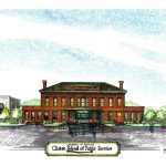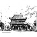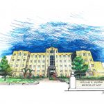 Her job actually ties into her recent exploration into creating drawings of buildings and architecture, which she says all stems from a request her husband made recently. “He was graduating from law school and he asked for a drawing of his school building, so that’s how I got started doing this,” she explains.
